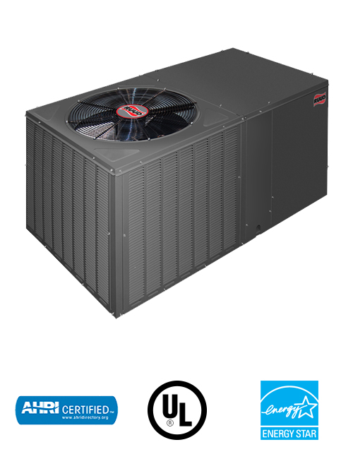 The 2-5 ton Ruud 13 SEER RSNM & 14 SEER RSPM, Dedicated Horizontal Package Air Conditioning units feature earth-friendly R-410A refrigerant.